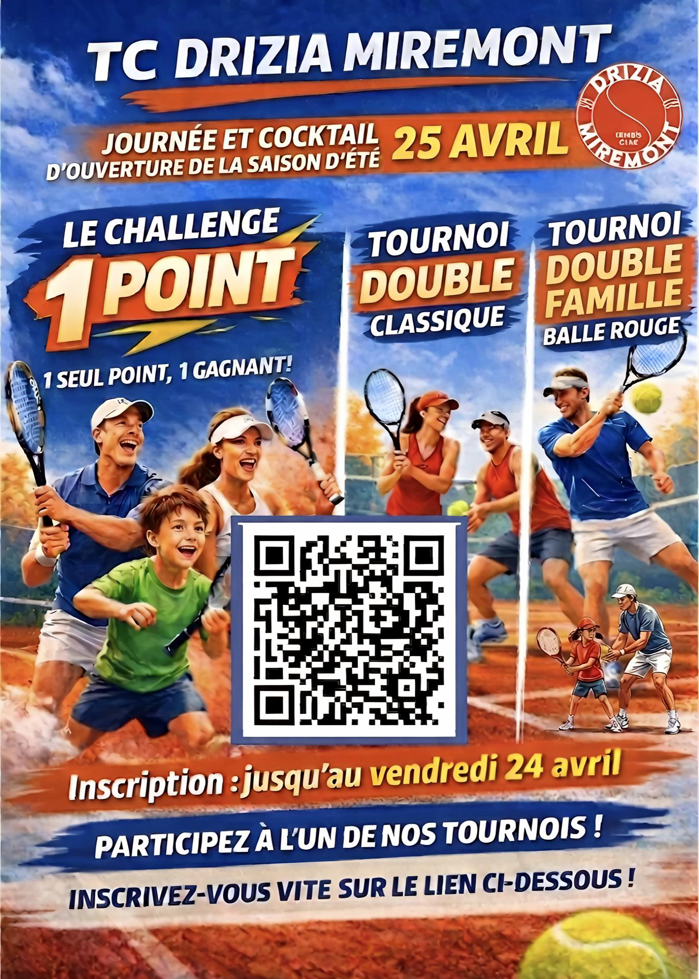 Du club-house élégant à notre équipe d’entraîneurs passionnés, chaque détail reflète notre engagement envers la qualité et le plaisir de jouer. Avec des programmes sur mesure, un calendrier animé d’événements et des liens forts avec notre communauté, le TC Drizia–Miremont cultive depuis plus de 90 ans une passion pour le tennis qui se transmet de génération en génération.